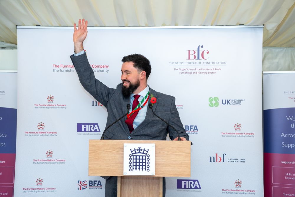 Before I close, I’m delighted to introduce the person who will be taking on the role of Chairman of the British Furniture Confederation, Tony Attard. Many of you will know Tony as a passionate advocate for British design and manufacturing, and as someone who brings enormous experience and energy to everything he does.